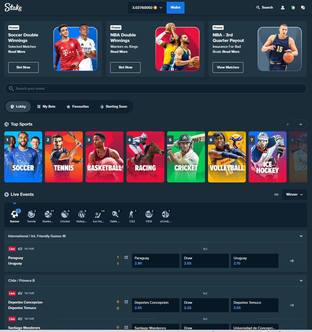 Stake.com no es solo un casino. También cuenta con una sólida sección de apuestas deportivas.